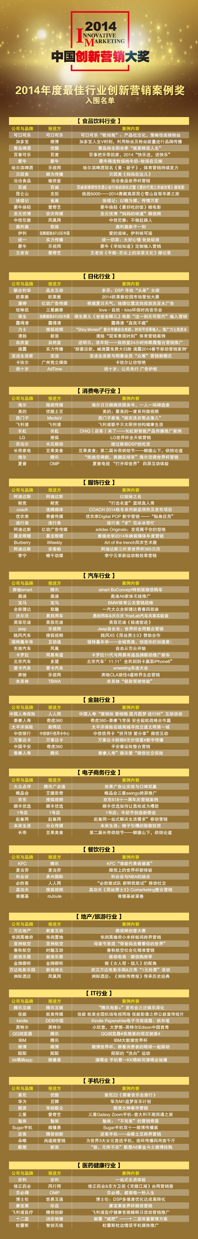 2014中国创新营销大奖入围名单